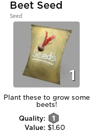 Beet seeds can be obtained from Pitchfork Jeb's Farmer Supply for $2.00 each. Each seed yields 3 beets.