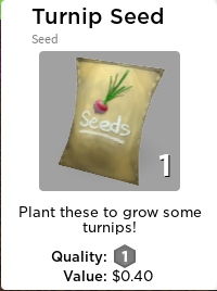Turnip seeds can be obtained for $0.50 each at Pitchfork Jeb's Farmer Supply. Each seed yields 5 turnips.